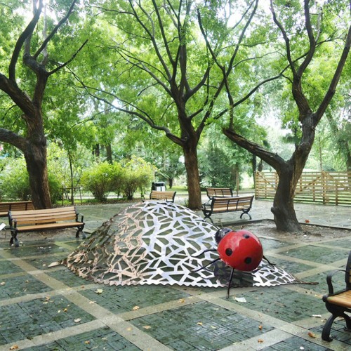 3、表面处理:不锈钢雕塑本身的颜色银白色、具有光泽。也可根据需求为雕塑上不同的颜色,一般为汽车漆。