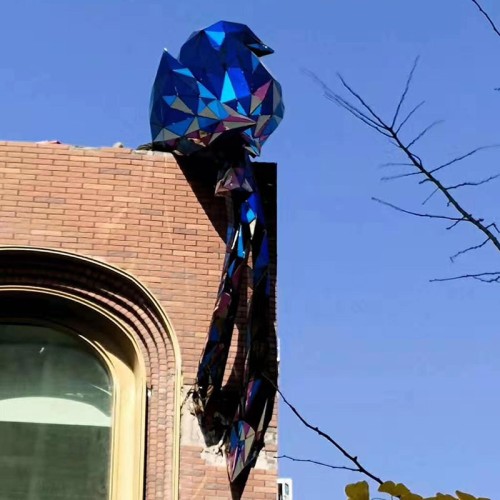 3、表面处理:不锈钢雕塑本身的颜色银白色、具有光泽。也可根据需求为雕塑上不同的颜色,一般为汽车漆。