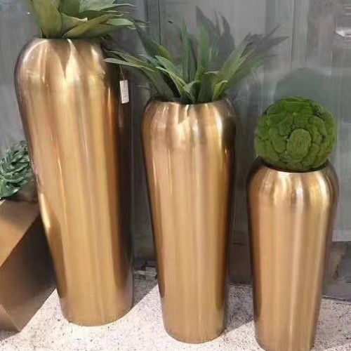 5、颜色新颖:由于不锈钢材质的优点很多,使用范围也广,现在不锈钢材料加工工艺不断增加,使现在的不锈钢花盆种类与颜色多了起来。如:金色、玫瑰金色、银色、黑色等,多种多样。