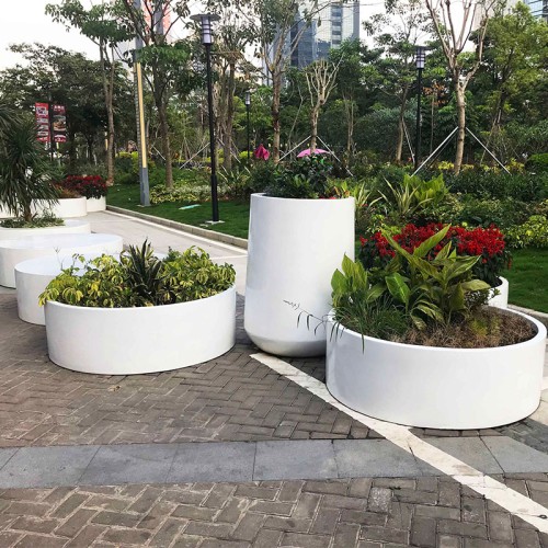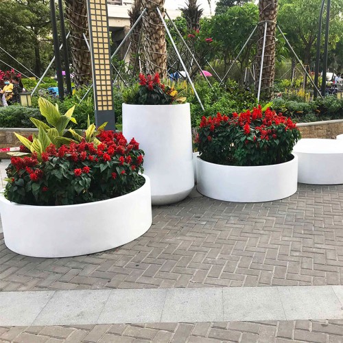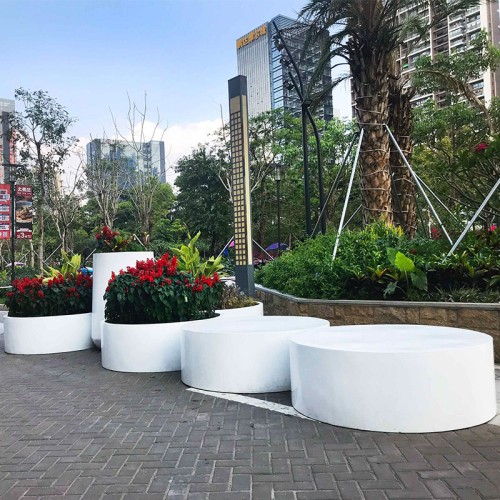 玻璃钢花盆圆形组合商业街梯形白色大号种树花钵异形花箱的优点: