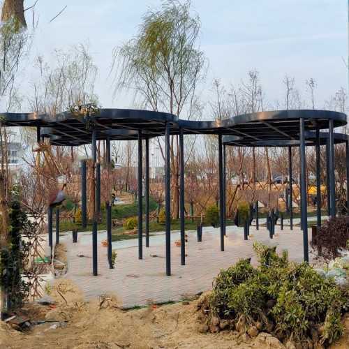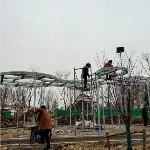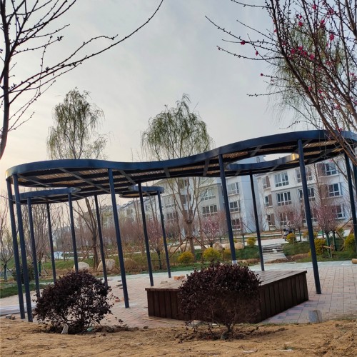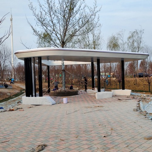 不锈钢廊架树叶造型公园小区异形特色亭子,不锈钢材质具有耐空气、蒸汽、水等弱腐蚀介质和酸、碱、盐等化学浸蚀性介质腐蚀的特性,因为不锈钢雕塑有诸多的优越性,所以很多的城市雕塑以不锈钢材质为材料。